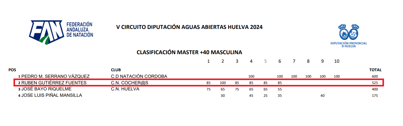 este tiempo, quedo 2º clasificado Máster (45-54 años), de 58 nadadores